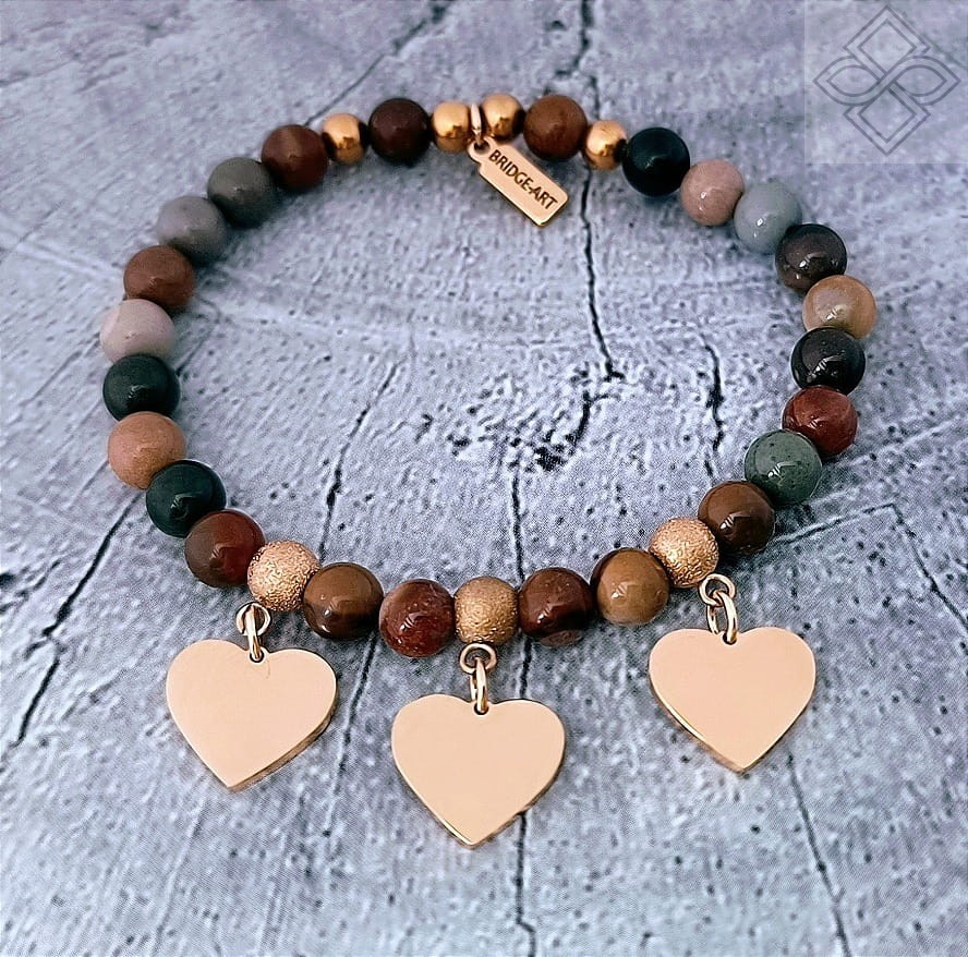 Bransoletka z Jaspisu Krajobrazowego z Trzema Serduszkami | Własny Grawer