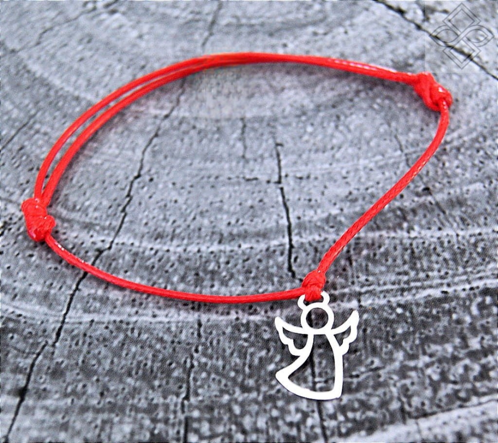 Srebrna bransoletka szczęścia wykonana z wodoodpornego sznureczka o grubości i zawieszki w kształcie aniołka 16/11mm.
