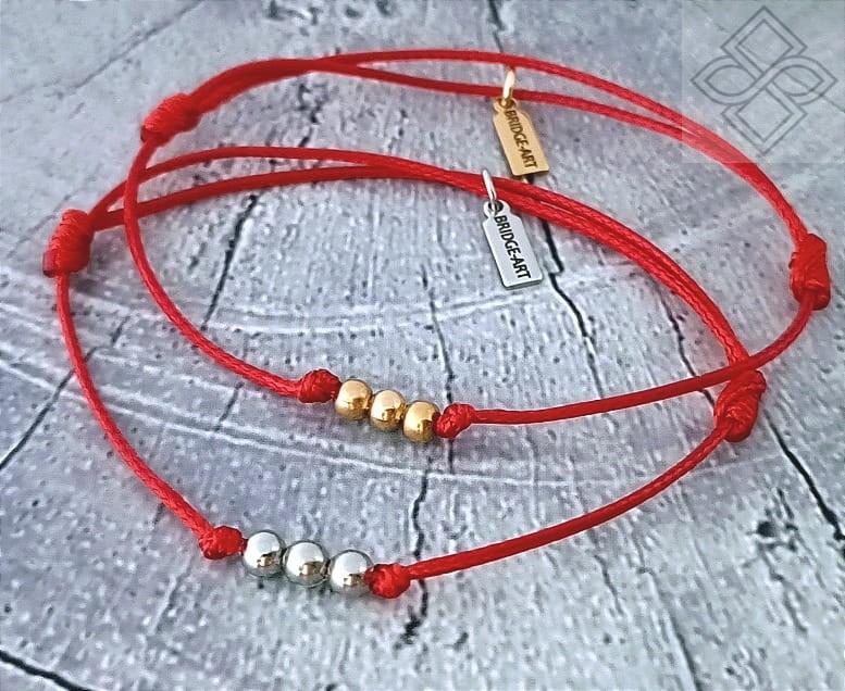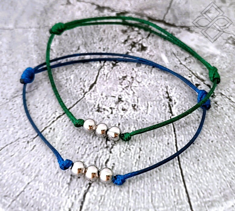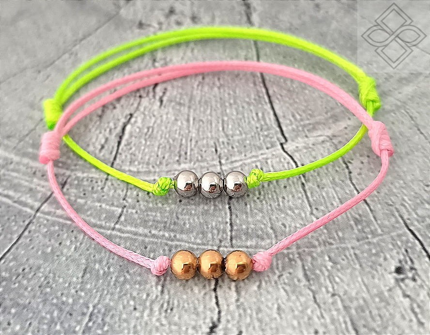 Stalowa Bransoletka Wodoodporna Uniseks Trzy Kulki na Cienkim Sznurku / 20 Kolorów