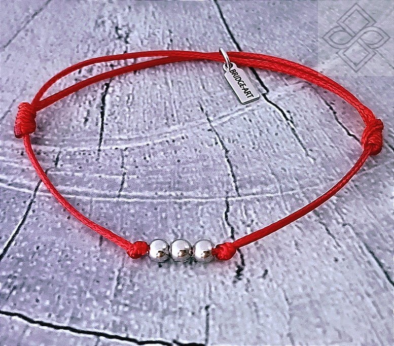 Stalowa bransoletka uniseks wykonana z wodoodpornego sznurka jubilerskiego o grubości 1mm (poliester) w 20 kolorach do wyboru i trzech kuleczek o średnicy 5mm ze stali szlachetnej.